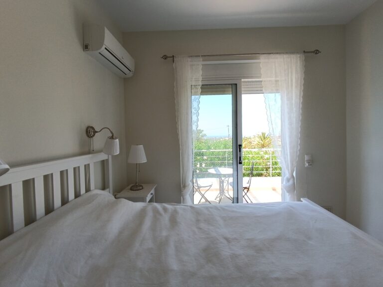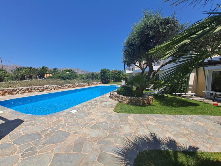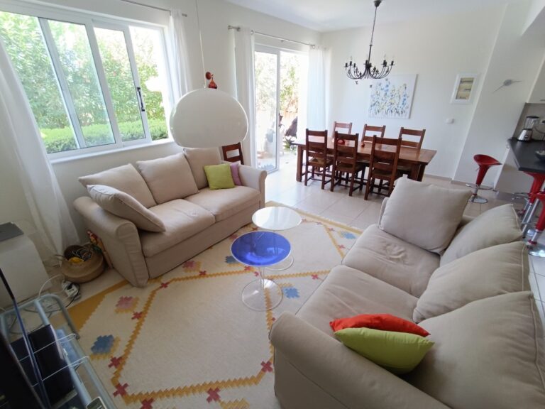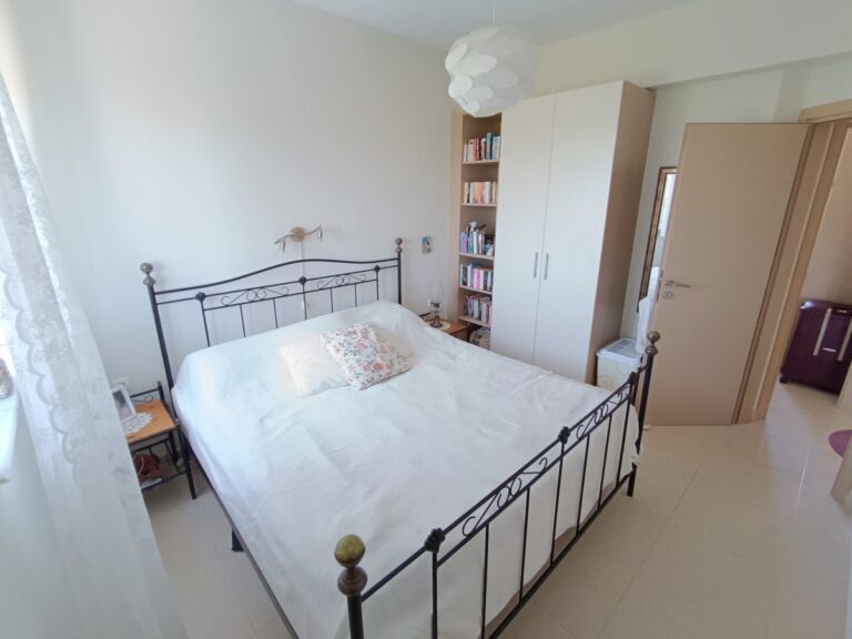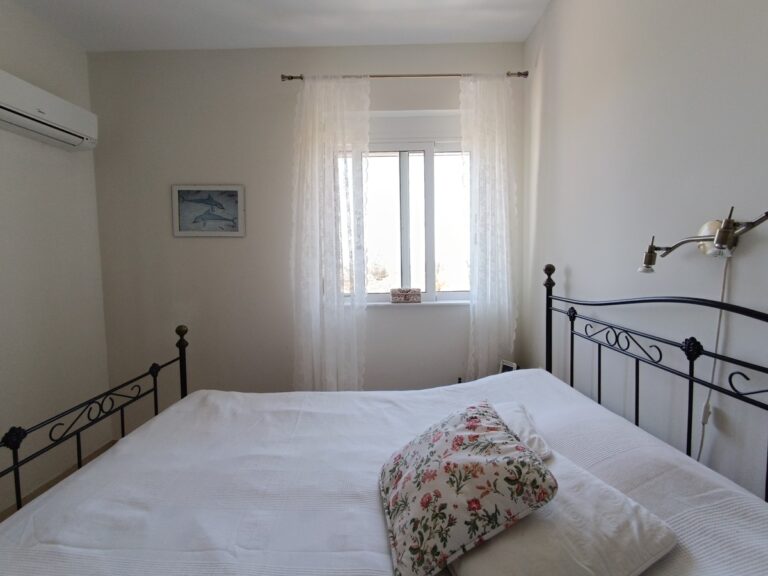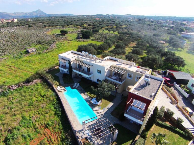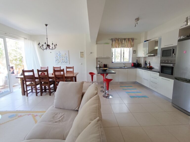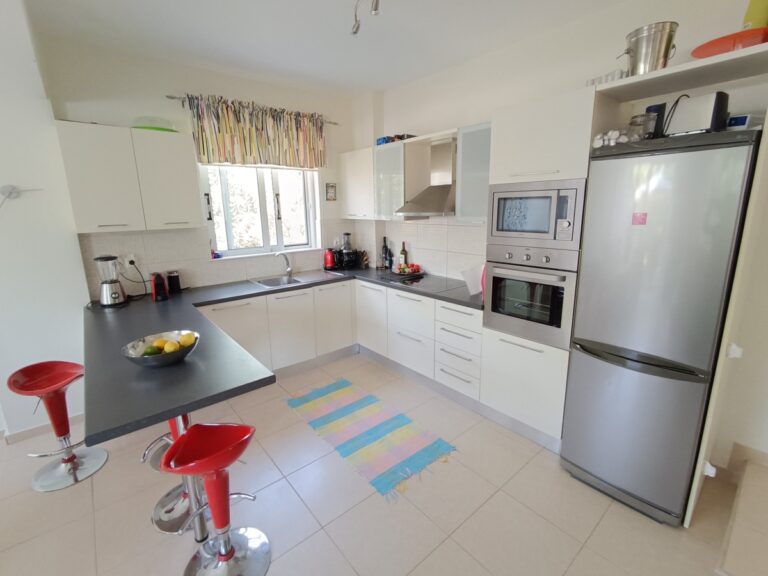 This modern apartment for sale in Akrotiri, Chania, Crete, is located in the village of Chorafakia. It has a total living space of 97m² and it is part of a completed development of 5 homes. It spreads over 2 levels and consists of 3 bedrooms and 1 bathroom. The ground floor comprises a designer-fitted kitchen, a dining room, a cozy lounge and a storage room under the stairs. From there one has direct access to the beautiful garden and the swimming pool. Upstairs, there are 3 bedrooms with fitted wardrobes and one bathroom, but also a balcony offering spectacular views of the sea and the mountains.