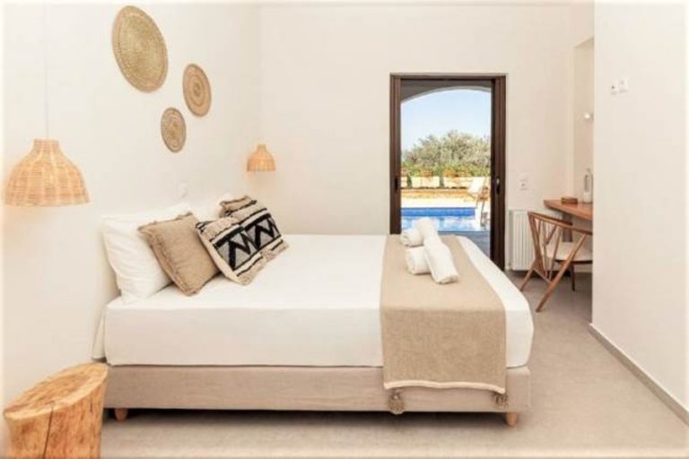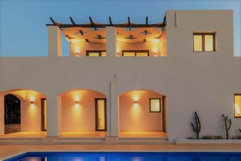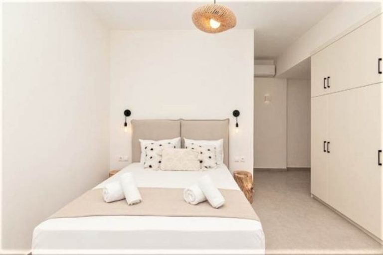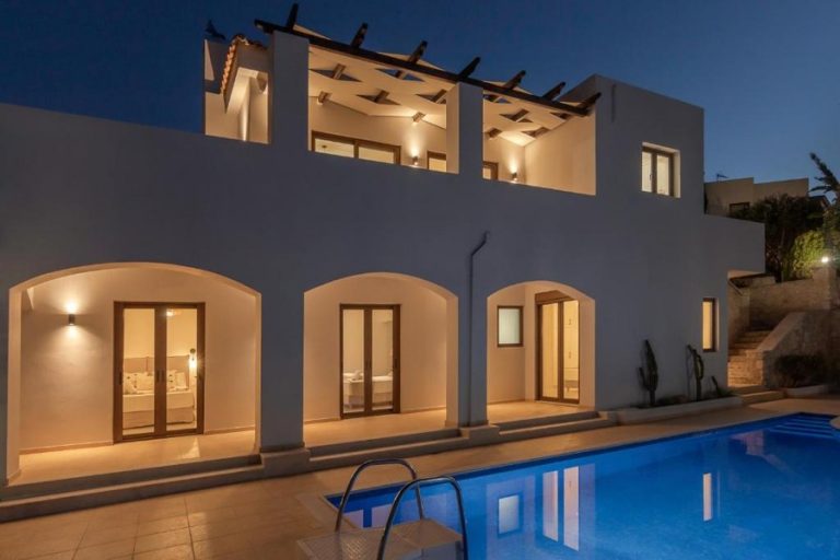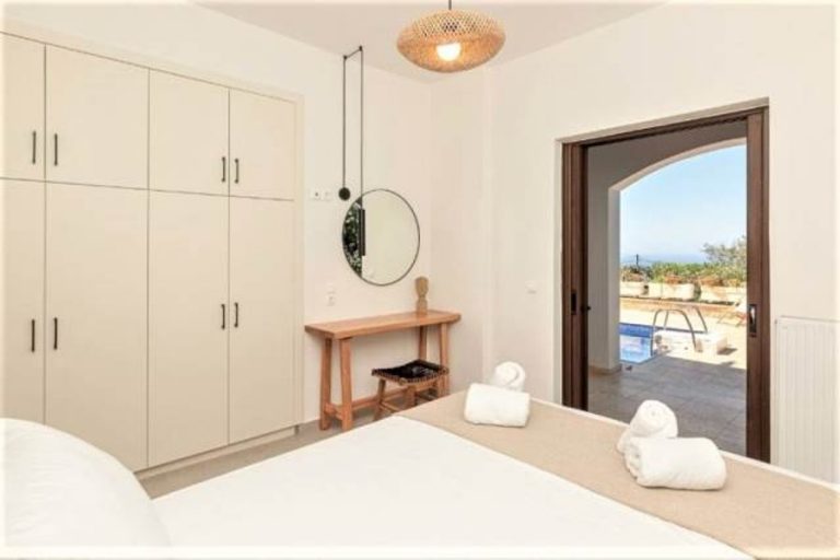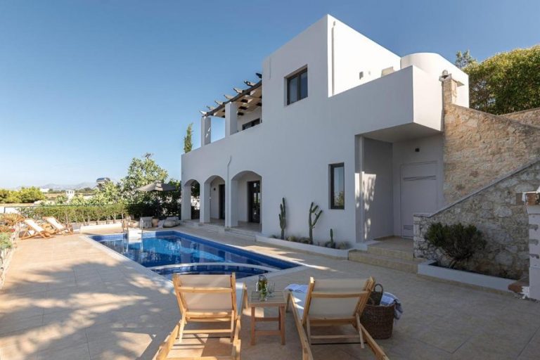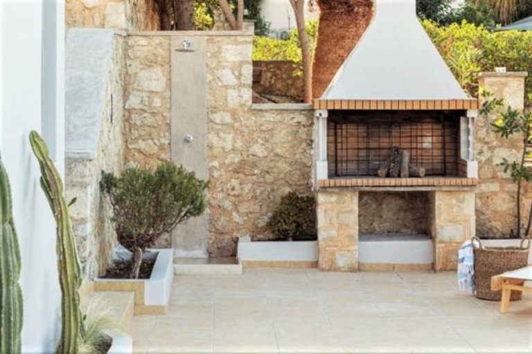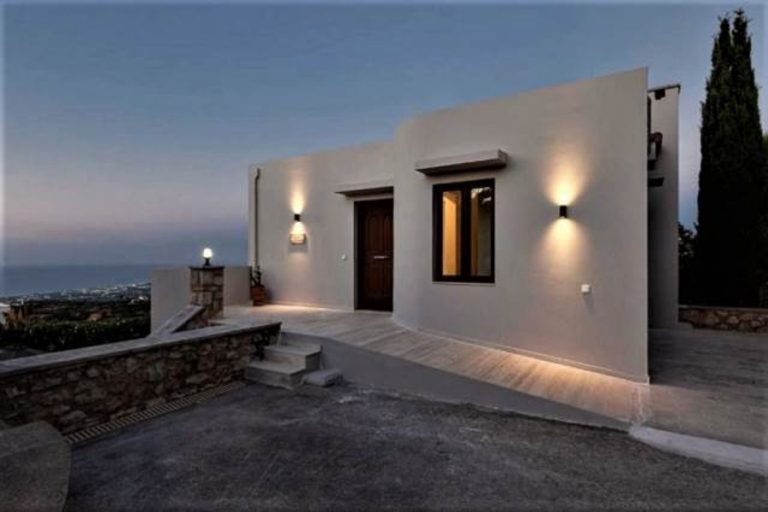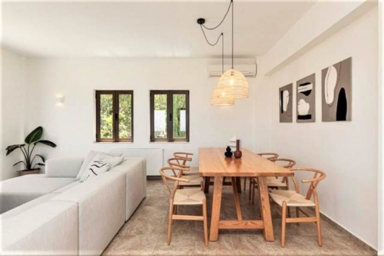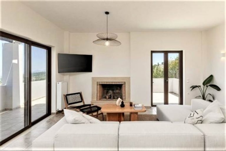 This newly renovated villa for sale in Roussospiti, Rethymnon, is a very comfortable and bright property ideal for a family to live there all year round, but also use it as a holiday home. The property is situated on a 557 sqms plot and has a living space of 155 sqms, consisting of 3 bedrooms, 3 bathrooms + 1 WC, a nice and fully equipped kitchen and a very modern living room next to the dining area.