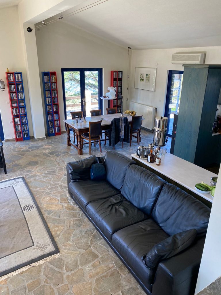 This house for sale in Drapanos Chania Crete is situated on the top of a hill with unique sea and sunset views. It has got the total surface of 198,41sqms with 2 extra storages of 84,49sqms and 20,20sqms. It was build in 2000, in a large plot of land of 9000sqms.