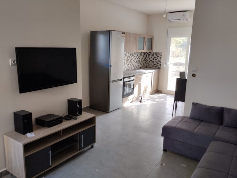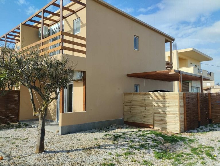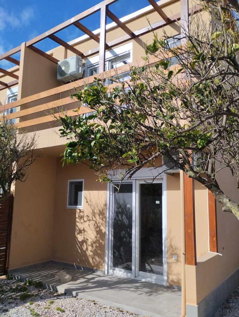 This newly built house for sale in Platanias Chania, Crete, is located in a very privileged location very close to the sea in the village of Pyrgos Psilonerou. It is part of a newly built complex and it is ready to move in, as it comes fully furnished. The complex consists of 8 apartments in 4 buildings, each one of which is 66sqms in total living space. The house is ideal for a holiday residence, as well as for rental exploitation, as it is located only 5 minutes from the crowded village of Platanias and the nearest beach can be reached within a 5 minute walk.