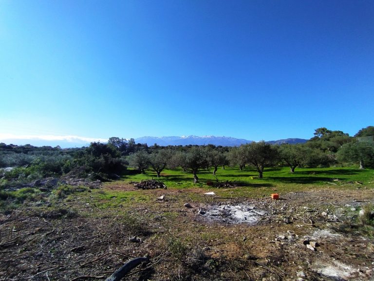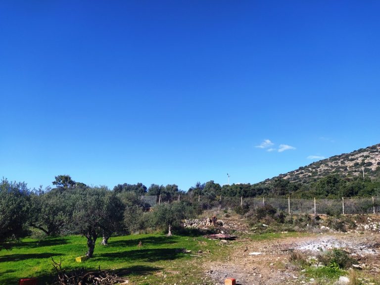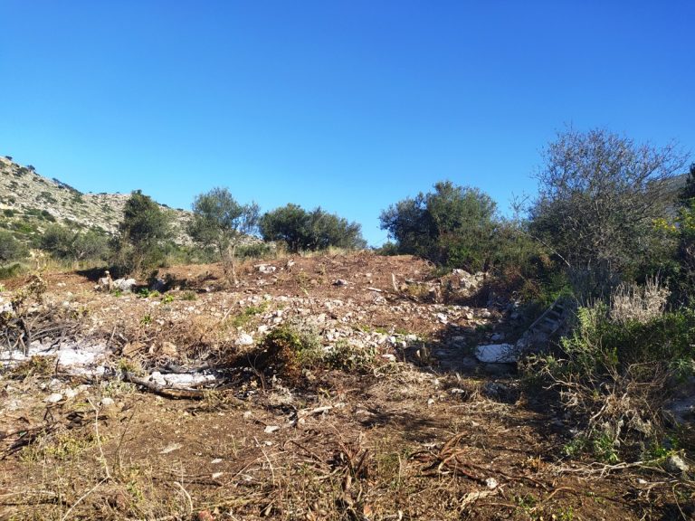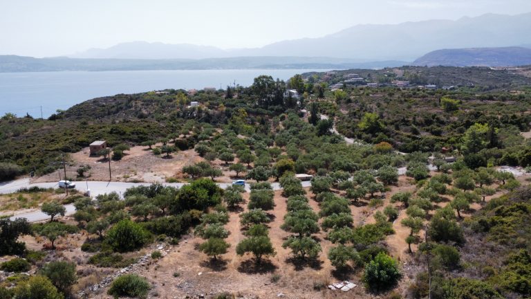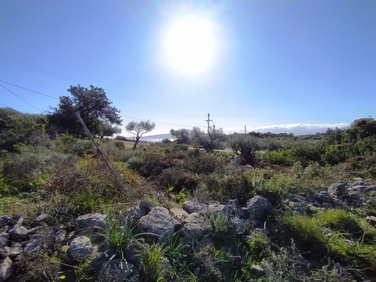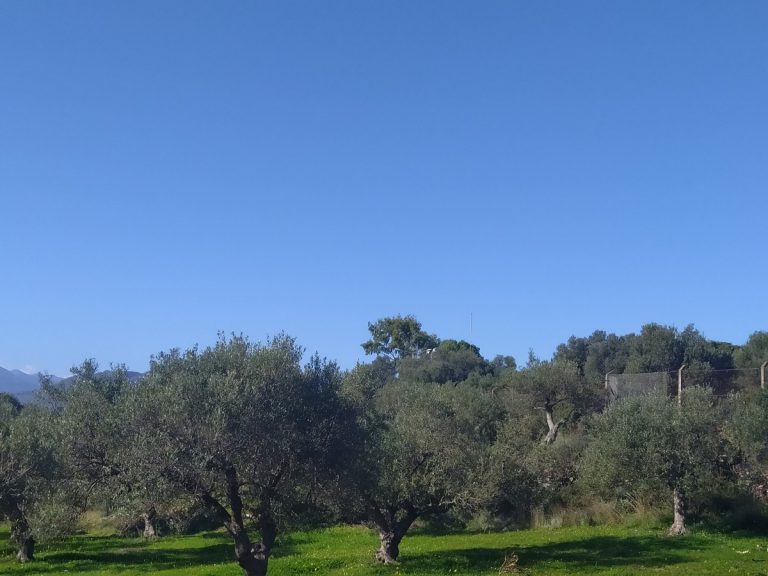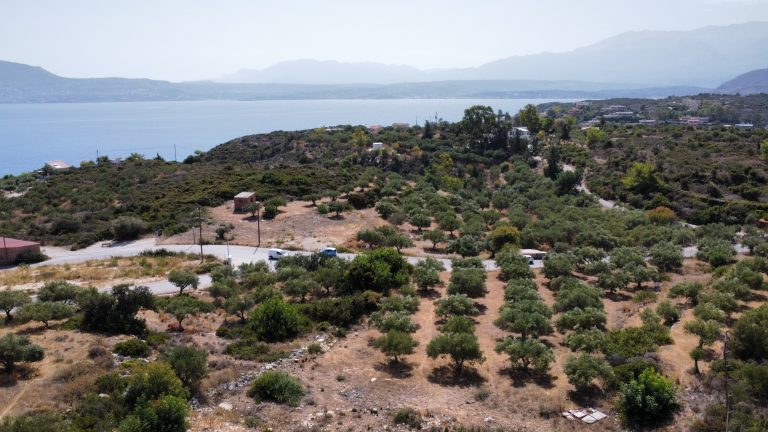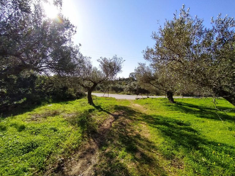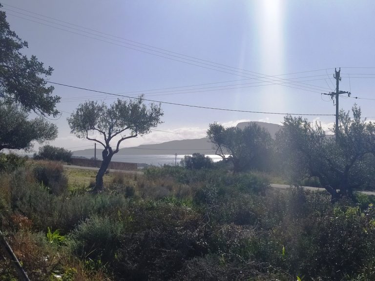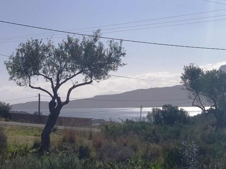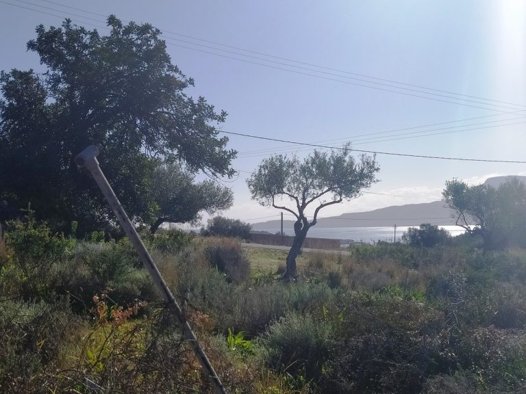 The plot is elevated, has open views to the sea and right now it has olive trees inside.