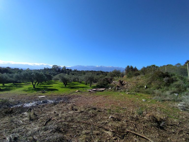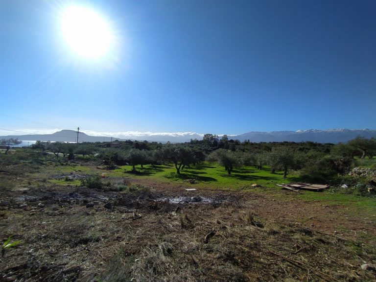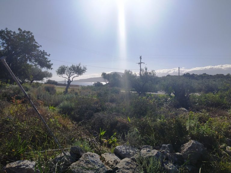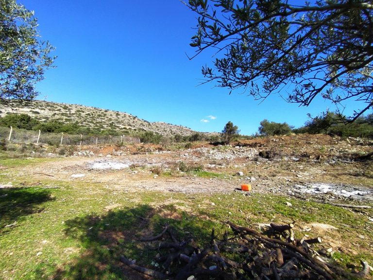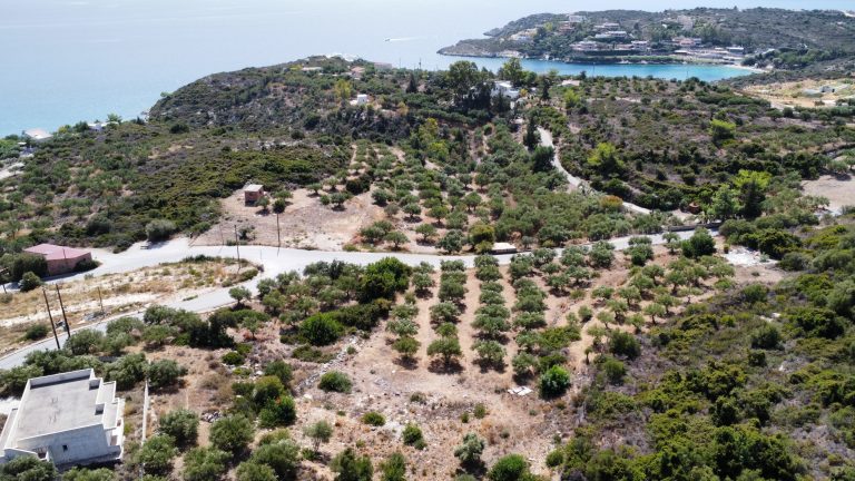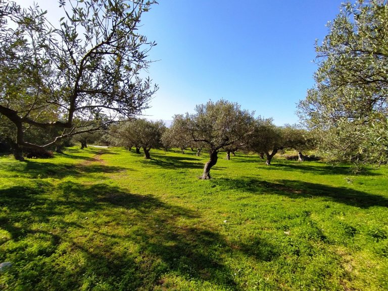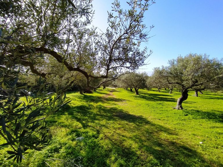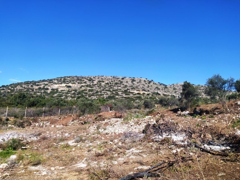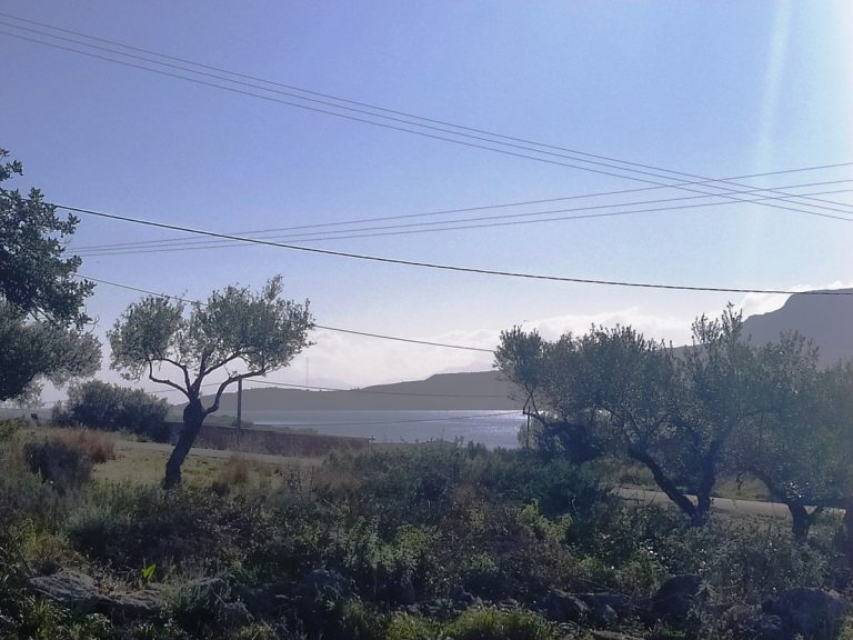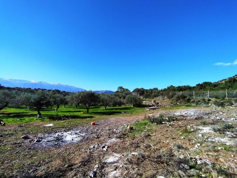 The plot is elevated, has open views to the sea and right now it has olive trees inside.