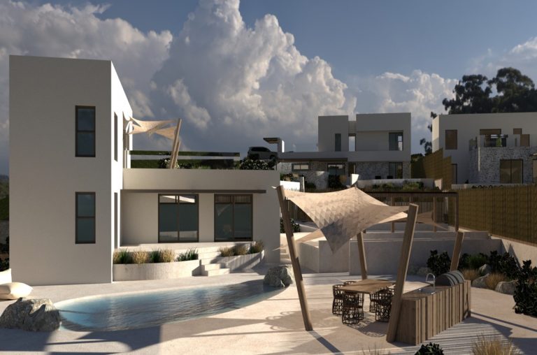 This is an under construction villa for sale in Kefalas, Chania, Crete, located in the Apokoronas region. It has a total living space of 150 m², sitting on a 850 m² private plot. It consists of 3 bedrooms and 3 bathrooms plus one WC, spanning 2 levels. On the ground floor, there is a modern kitchen connected to the living room and dining space that has floor-to-ceiling windows offering natural light and amazing views of the sea. On this level, one bedroom with an en suite bathroom, a storage space and a WC for guests are also available. Upstairs, the property features 2 bedrooms with en-suite bathrooms, one with a balcony offering panoramic views of the sea and a vast veranda, perfect for enjoying the stunning sea views and relaxing outdoors. Its current condition is under construction and outside it is going to be surrounded by lush landscaping with terraces, a BBQ area and a private swimming pool providing the ultimate tranquility and relaxation.