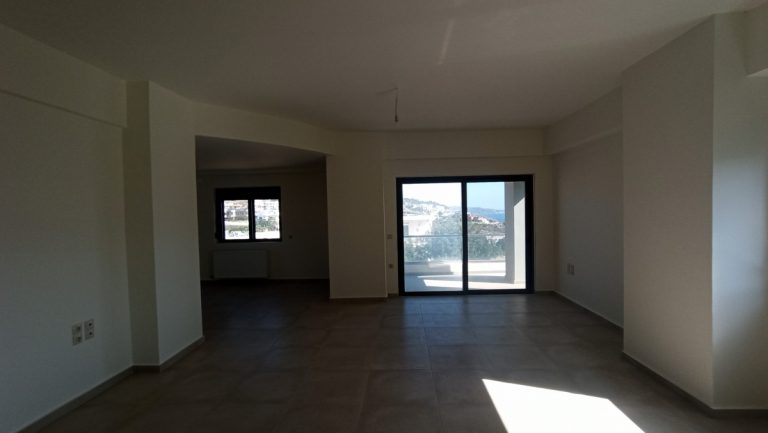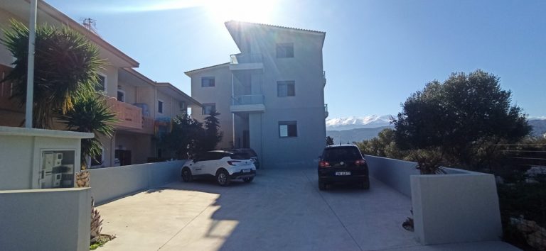 This apartment for sale in Vlites, Chania, Crete is part of a complex consisting of 3 units on a private plot of 635.61 m². This ground apartment covers a total surface of 150.55m² and consists of 3 bedrooms and 2 bathrooms. It provides a fitted kitchen, living and dining area with sea & mountain views and fitted wardrobes in the bedrooms. It is airy and bright and central heating and an elevator add to its appeal.