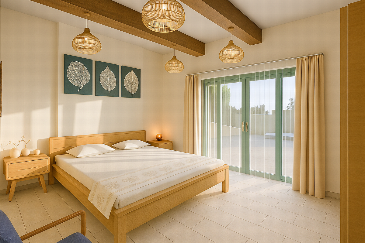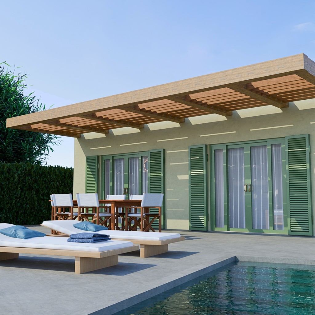 All three properties are single-level, ground-floor villas featuring 1 bedroom, 1 bathroom, and an airy open-plan living-dining-kitchen area. Each villa includes a beautiful and easy-to-maintain garden, a 12 sqm swimming pool, a sunbathing area, and an outdoor space for sitting and relaxing.