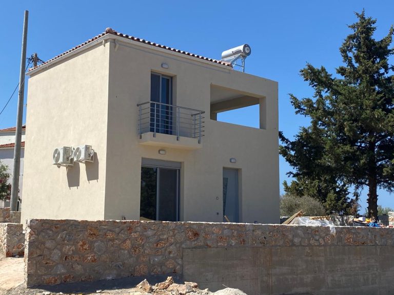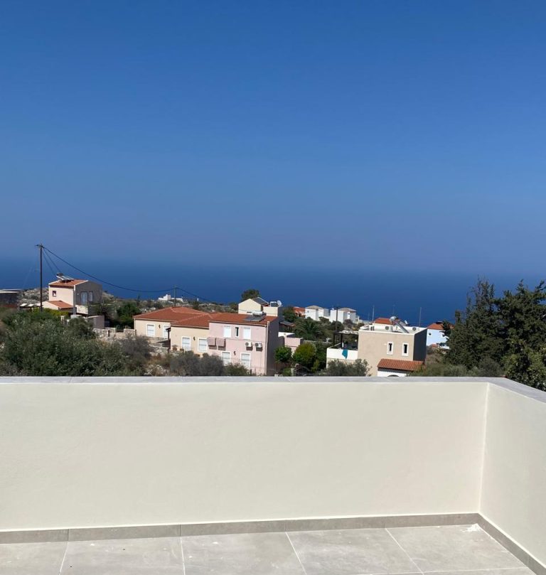 This is a newly built villa for sale in Apokoronas, Chania Crete, located in the picturesque village of Kefalas. It has a total living space of 80 m², sitting on a 200m² private plot. It is developed over 2 levels, and it consists of 2 bedrooms and 2 bathrooms. On the ground floor there is an open-plan kitchen and a living room and doors leading to an open terrace. Additionally, there is one bedroom and one bathroom on this floor. Upstairs, it features a private floor with one bedroom and a bathroom and a large part covered terrace enjoying amazing views across the sea.