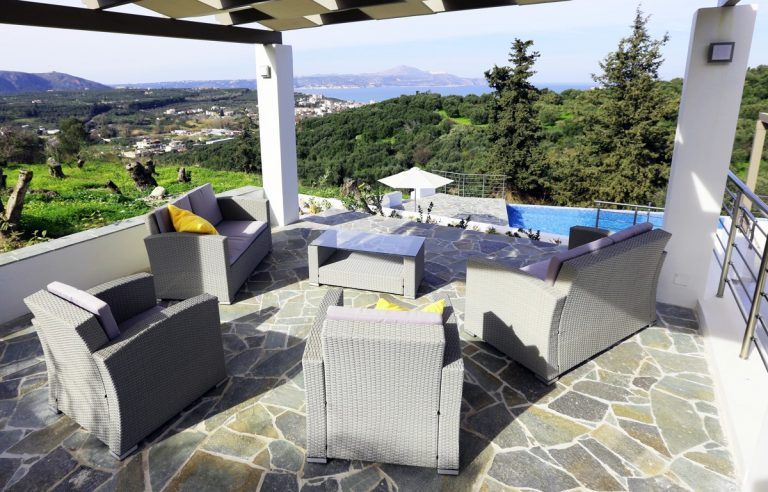 This secluded, beautiful villa for sale in Kalyves, Chania is a must see! Built in 2015, this luxurious villa with an open floor plan has 2 bedrooms and 1 bath consisting of 76.8 sqms of living area. Spacious balconies surround this home offering numerous outdoor eating areas and views as far as the eye can see. Spend you days swimming in your own 44 sqms solar heated infinity pool while enjoying the private, lush countryside, mountain and sea views. This unique home is an excellent choice whether you wish to reside here or purchase it as a rental income property.