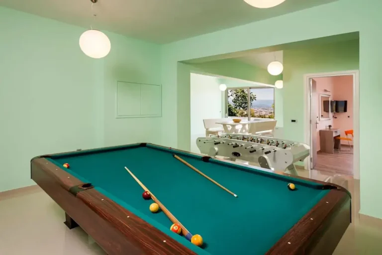 This is a spectacular villa for sale in Akrotiri, Chania, Crete. It has a total living space of 250 m² and it is developed over 2 levels. It consists of 5 bedrooms and 4 bathrooms. Located in a prime area near the city center, this villa offers stunning panoramic views of Chania and breathtaking sunsets, all within a short distance from both the heart of the city and the magnificent surrounding beaches. It is equipped with various amenities, including a swimming pool and a billiard room, ensuring plenty of entertainment and relaxation.
