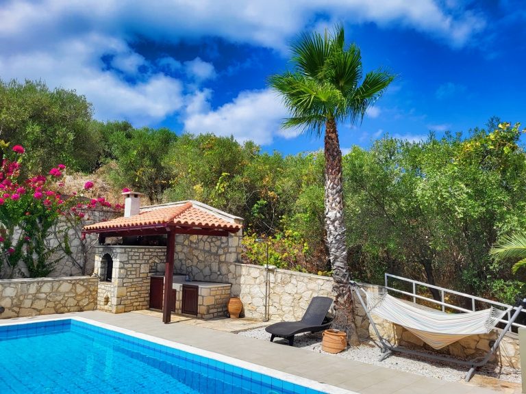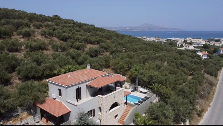 This stunning stone villa for sale in Apokoronas, Chania Crete, is located in the beautiful coastal village of Almyrida. The villa is developed over 3 floors consisting of 4 bedrooms and 2 bathrooms, with a total living space of 185m², sitting on a 828m² private plot. The views from the property are unobstructed of sea & mountains, and within walking distance to the sandy beach of Almyrida, with all kind of amenities year round. There are plenty of outdoor spaces, including swimming pool, brand new jacuzzi and BBQ area.