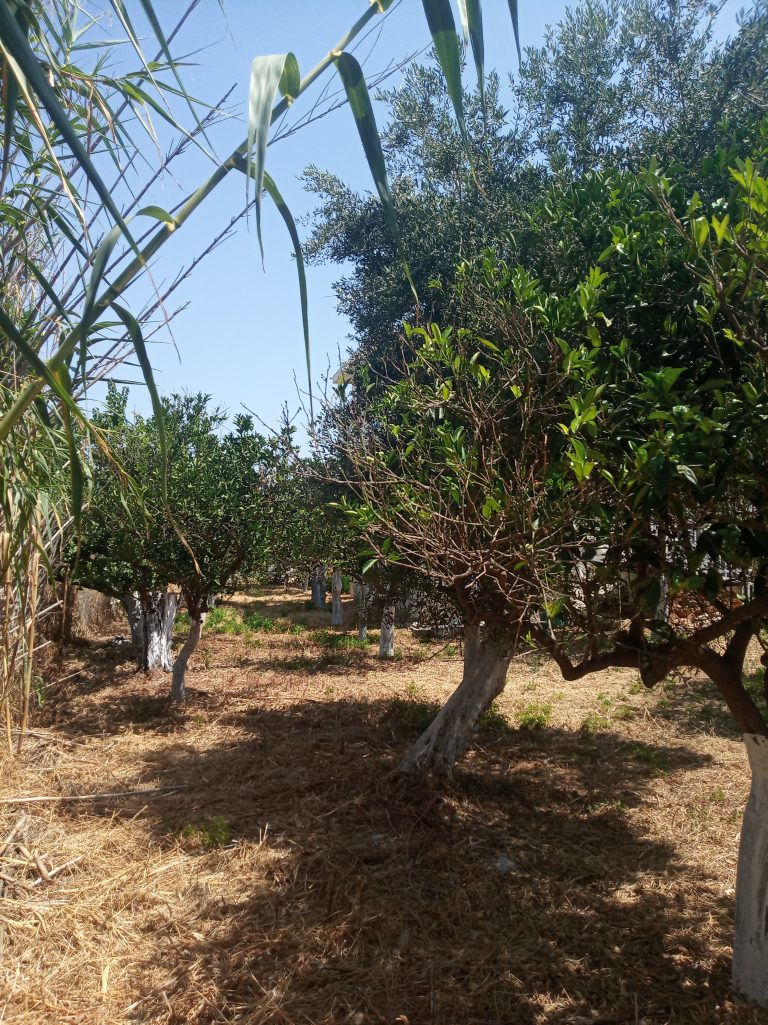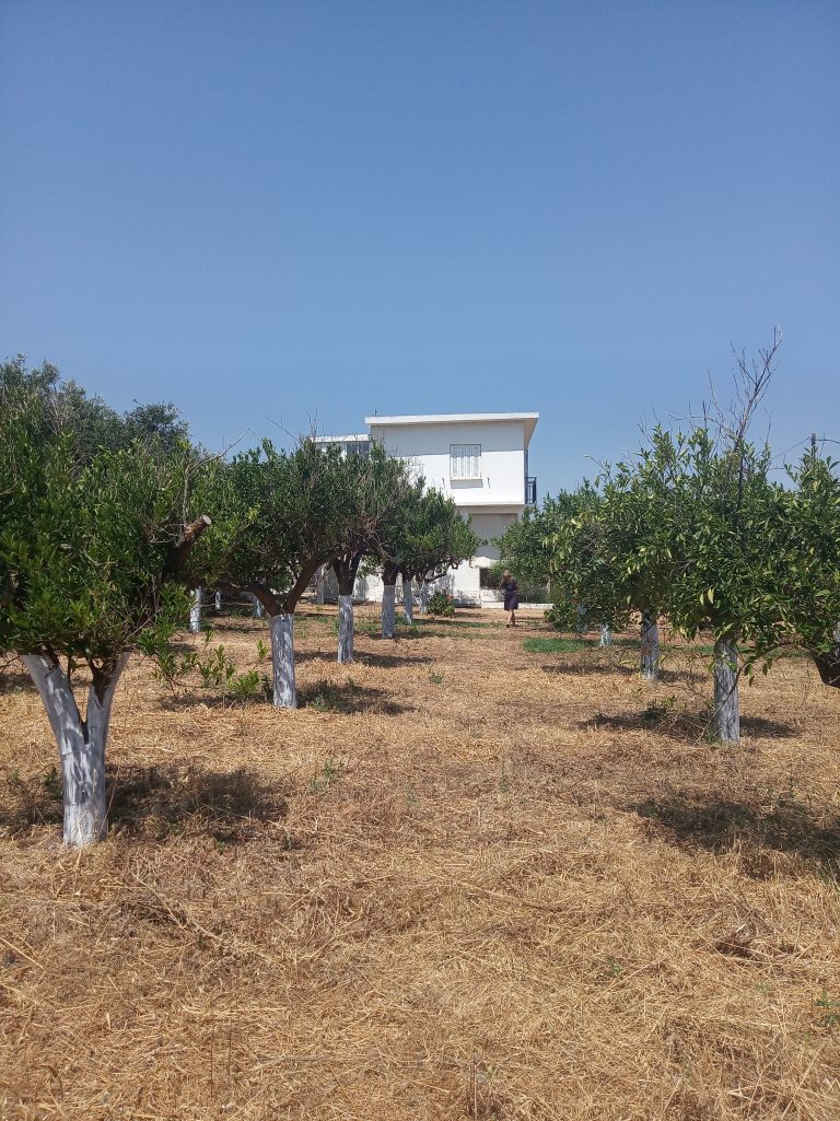 The property is only 540metres from the beach. The plot has an olive grove and an abundance of orange trees all neatly planted next to the house.