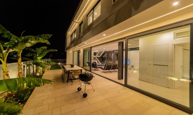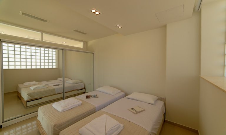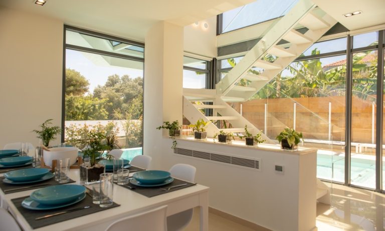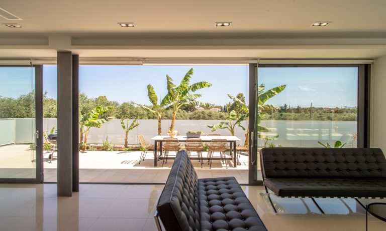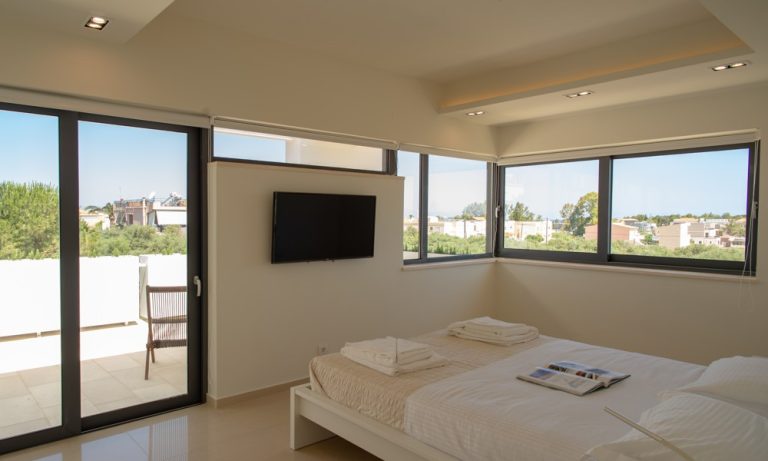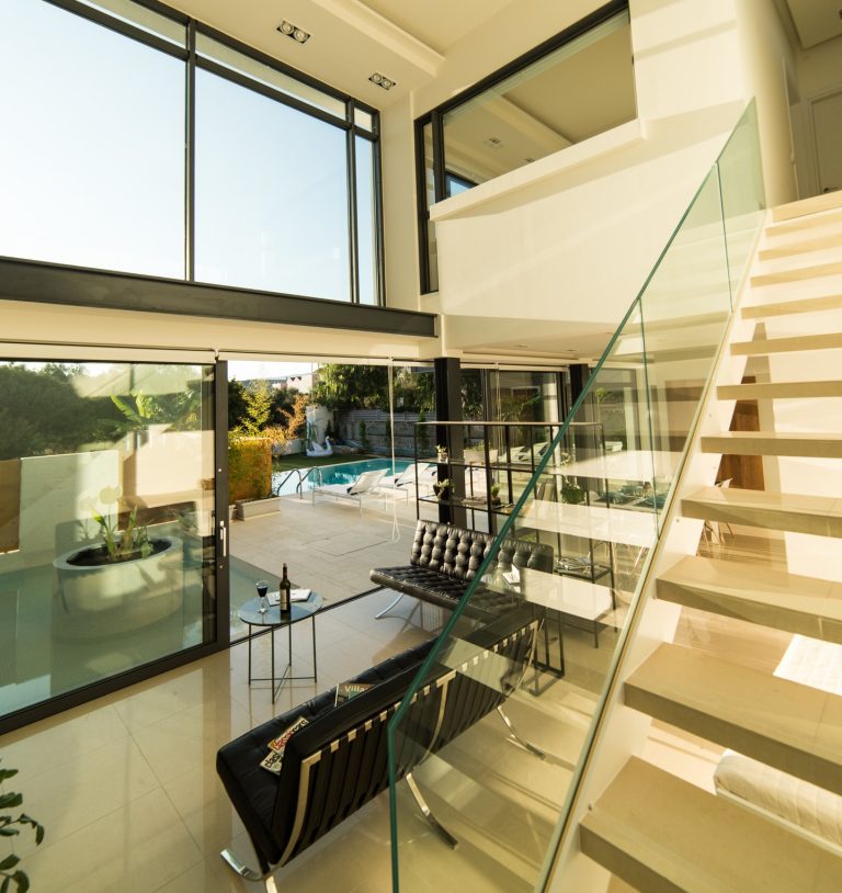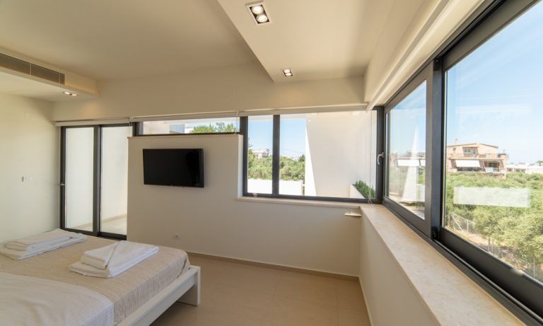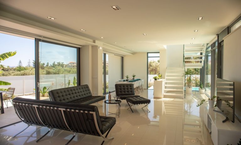 These are two spectacular villas for sale in Nea Kydonia, Chania, Crete, located in Daratsos village offerring beautiful mountain views. They are semi detached and the total size of them is 291 m², situated on a 585 m² private plot and feature 7 bedrooms and 6 bathrooms. The first villa features a spacious and bright living room, a kitchen and dining area, four double bedrooms, and three bathrooms. The second villa offers similar spaces but with one fewer bedroom. Both villas boast a private entrance, stunning garden areas, infinity swimming pools, and sunbathing zones. Designed with contemporary architecture and sustainability in mind, these homes are built with a mix of glass, steel, and concrete, creating bright, open spaces that highlight modern living. Conveniently located just 3 minutes from the beach and 10 minutes from Chania city center, these properties are perfect for year-round living and are suitable for a great investment opportunity.