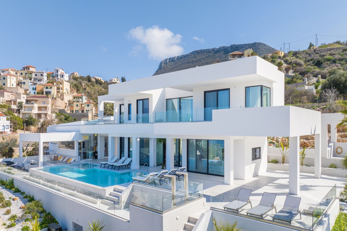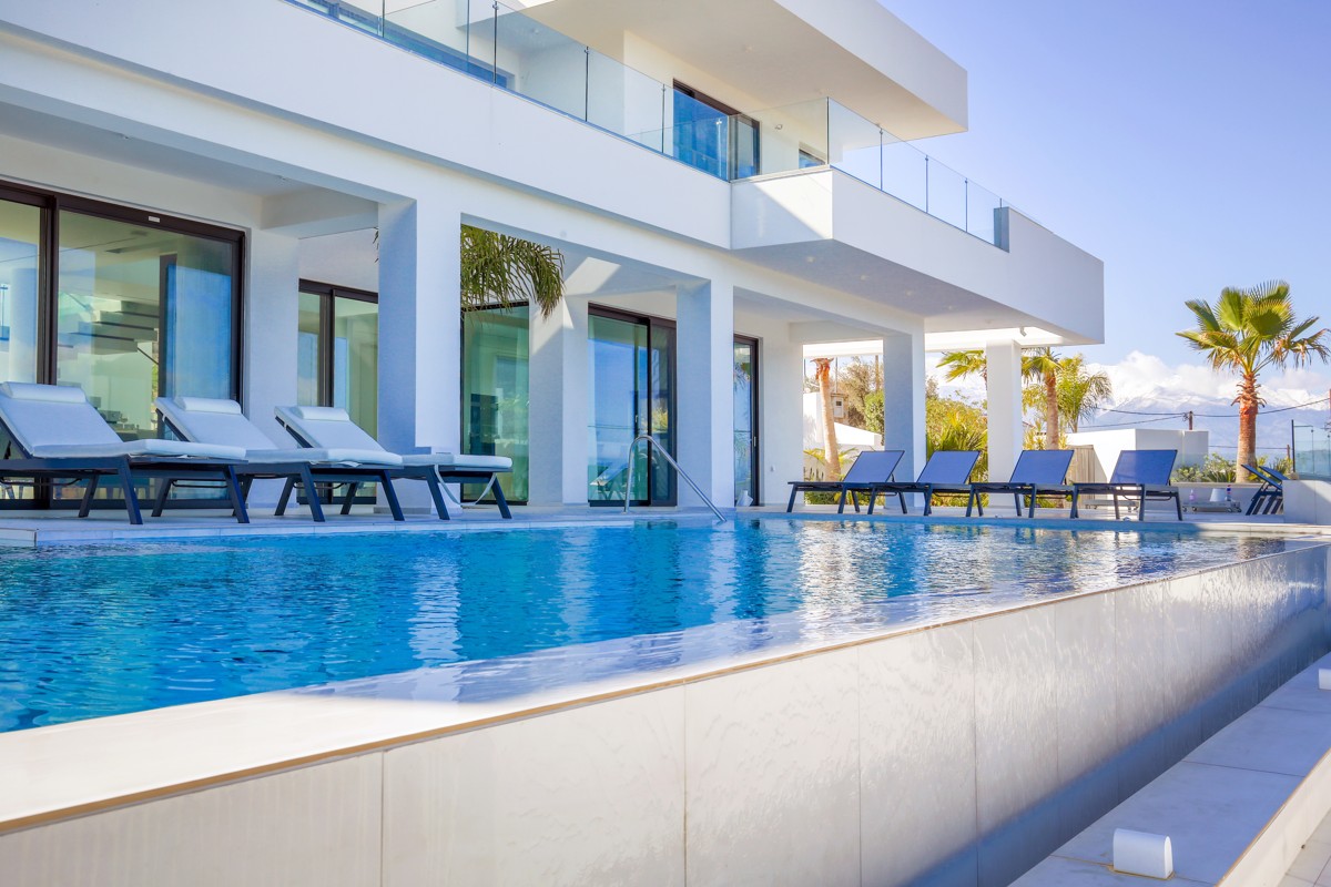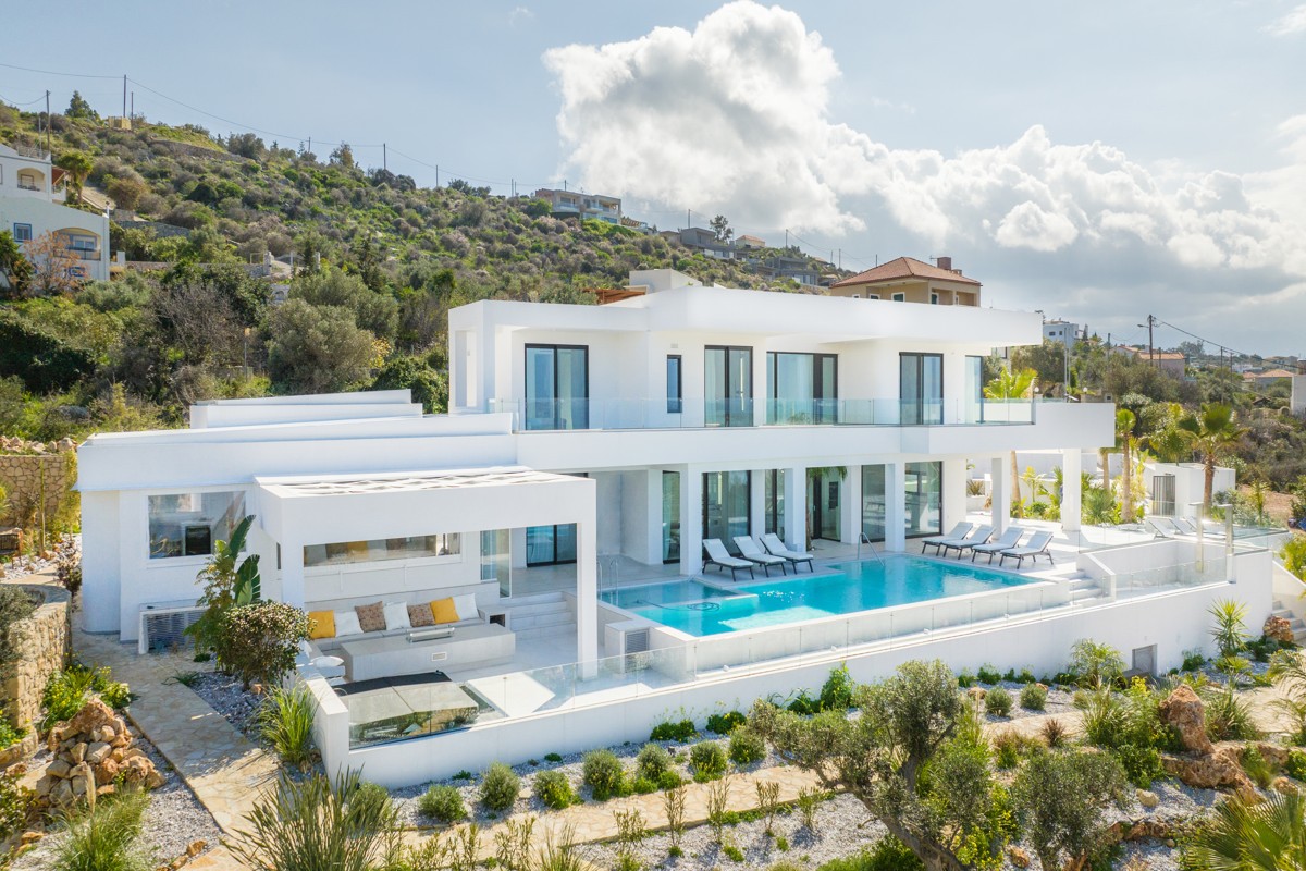 This is an amazing under construction villa for sale in Apokoronas, Chania, Crete, situated in the seaside village of Kokkino Chorio and will have a total living space of 350 m², situated on a 2.351 m² plot . The villa spreads on 2 levels and consists of 5 bedrooms and 6 bathrooms. It is the epitome of elegance and sophistication, making it the perfect home for those seeking luxury living. On the ground floor, there is an equipped kitchen, a living room with dining area, a refined bedroom with bathroom and an additional toilet for guests. On the second floor, there are 4 magnificent bedrooms, each with its own bathroom with balconies offering amazing views of the sea and the mountains.