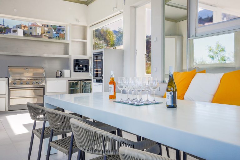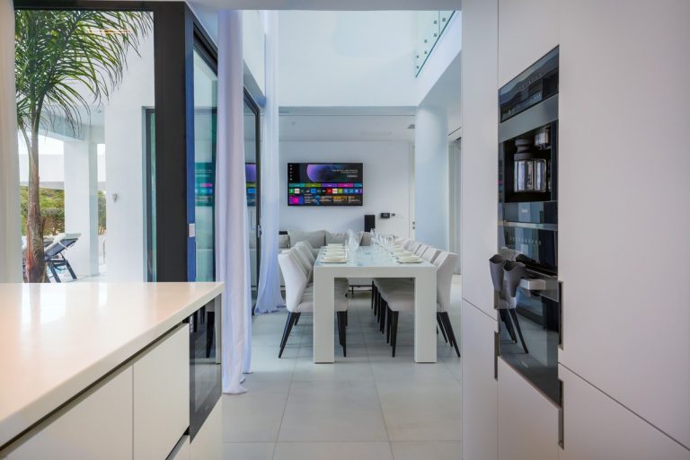 Outside, this luxury villa features a landscape garden and a heated infinity pool, including a mini pool with Jacuzzi. Additionally, there is a barbecue and an outdoor seating area, offering an ideal setting for entertainment and lasting memories.