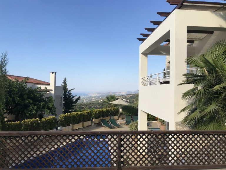 The villa is part of a complex of 5 villas, has its own private pool and enjoys amazing view of the sea, countryside and the city of Rethymnon from the balcony. The living space is of 214 sqms including 5 bedrooms and 4 bathrooms, 2 living rooms and 2 kitchens.