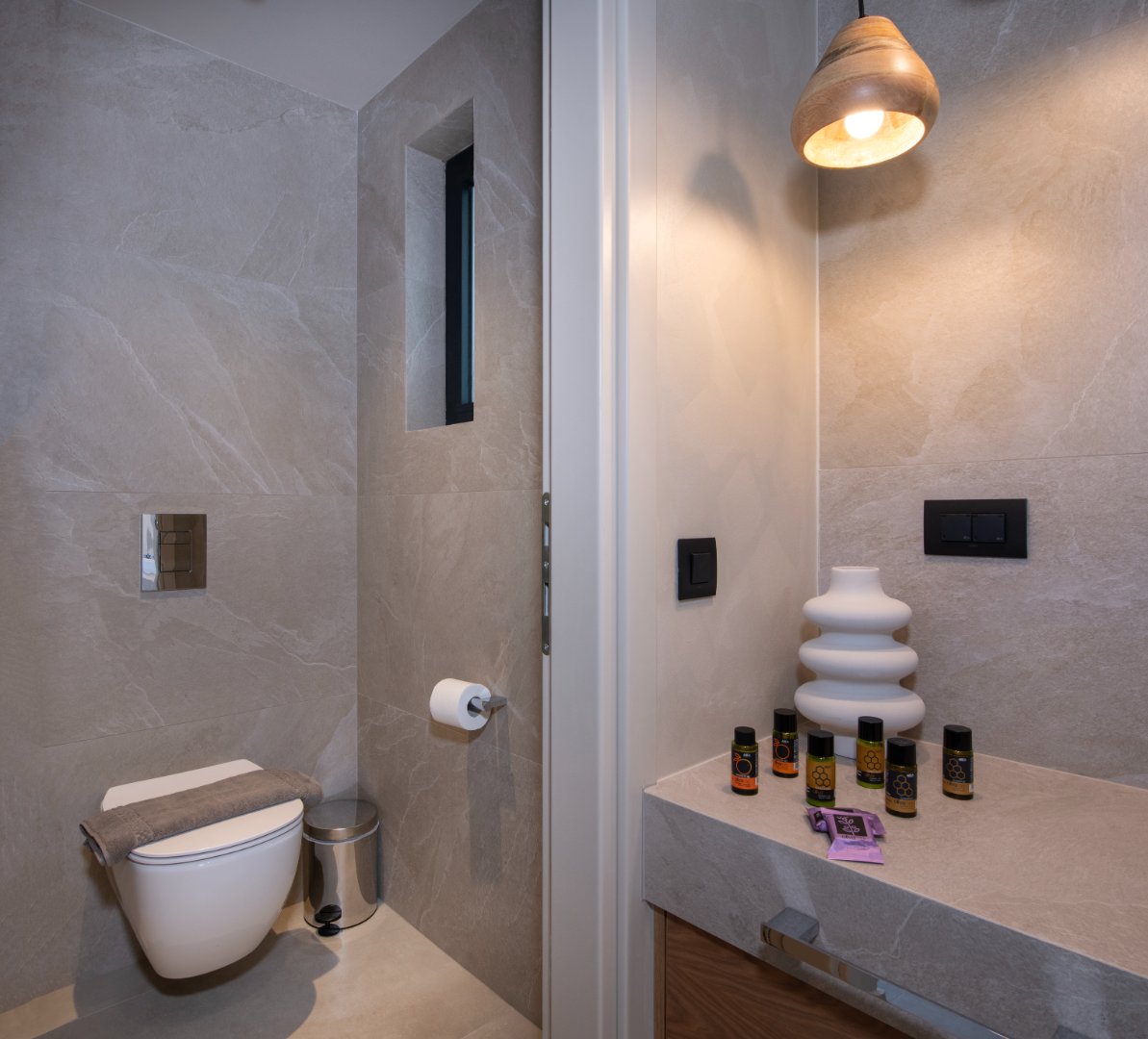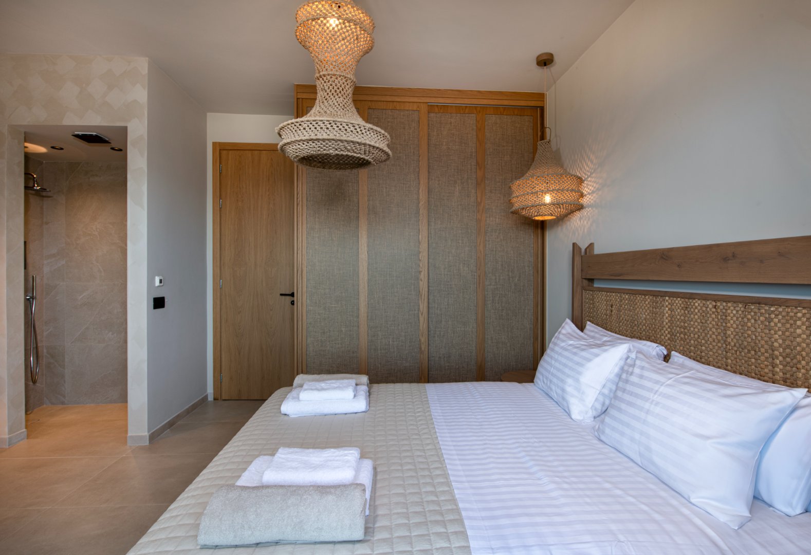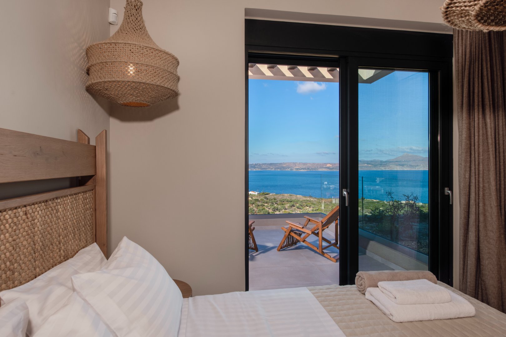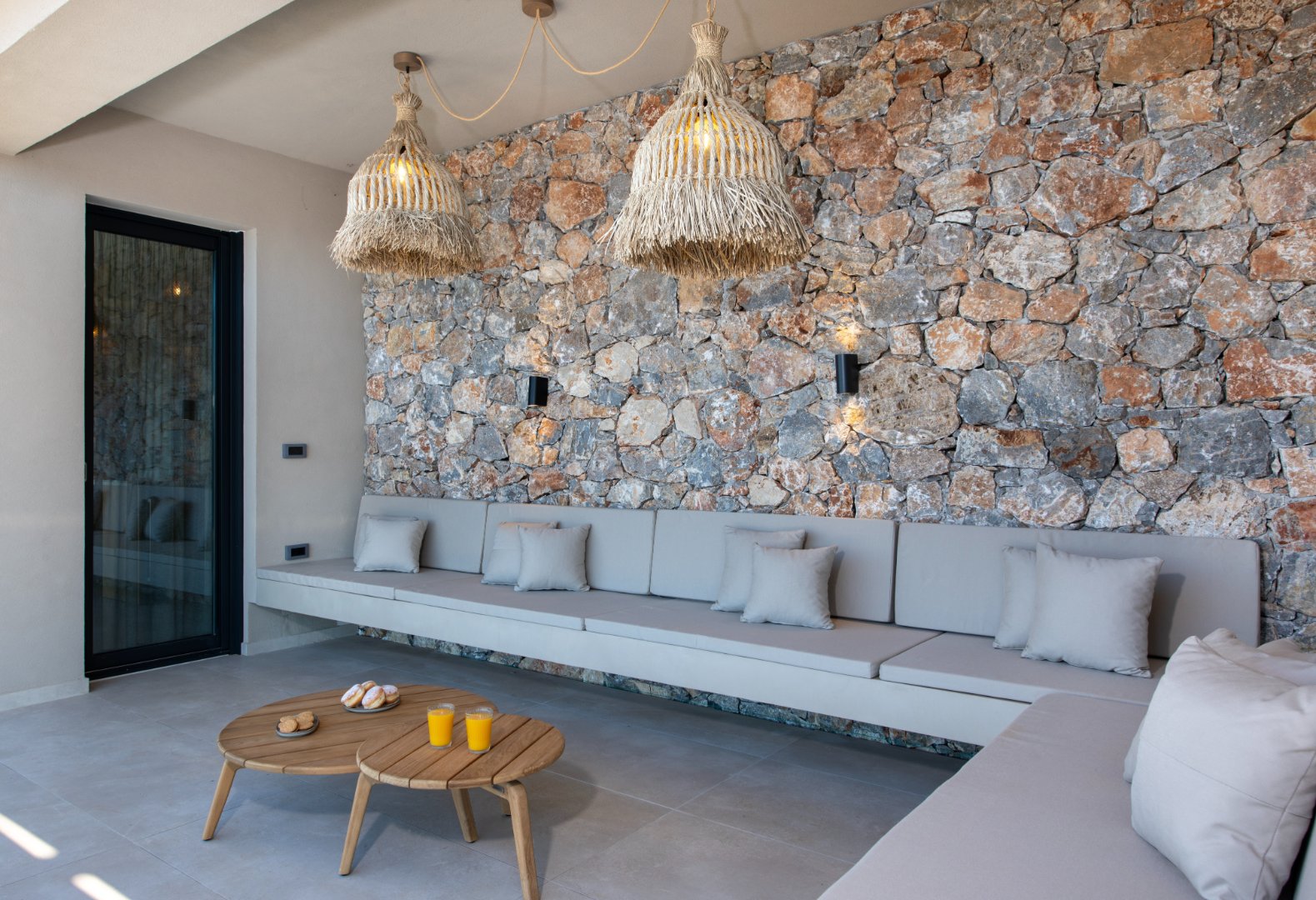 Step outside to your private oasis and soak in panoramic sea and sunset views that stretch across the bay. The spacious outdoor area features a private heated pool (available at an extra cost) equipped with Hydromassage jets, providing the perfect spot to unwind after a day of exploring Crete’s coastline.